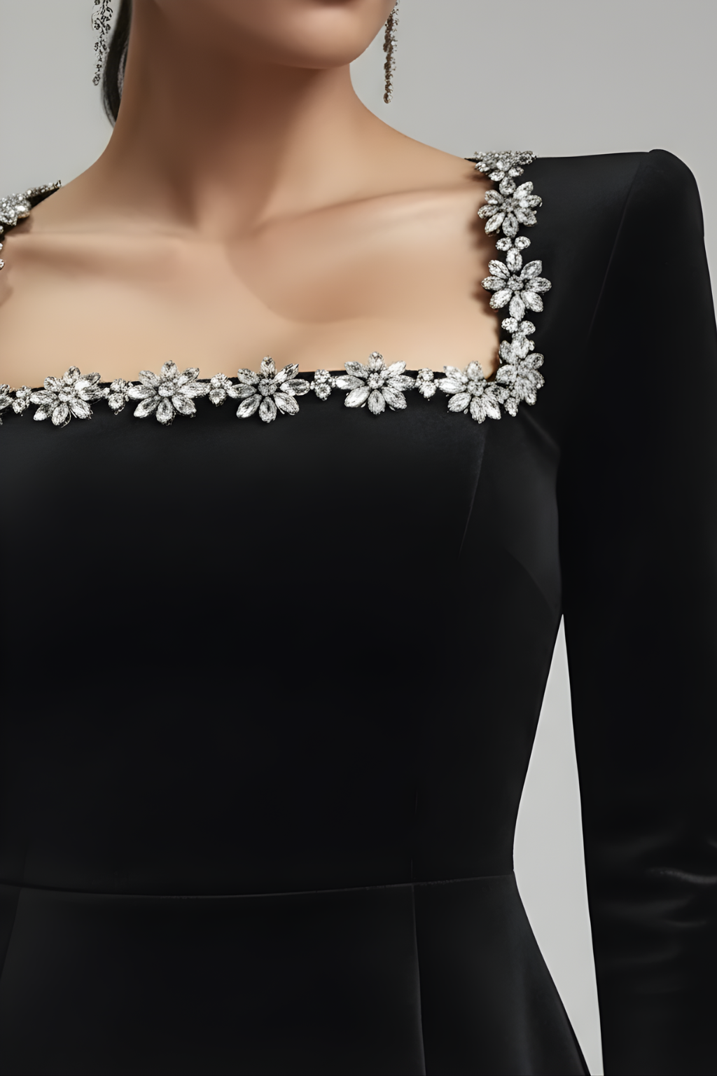 Square Neckline Offers a refined and modern frame for the neckline and shoulders.