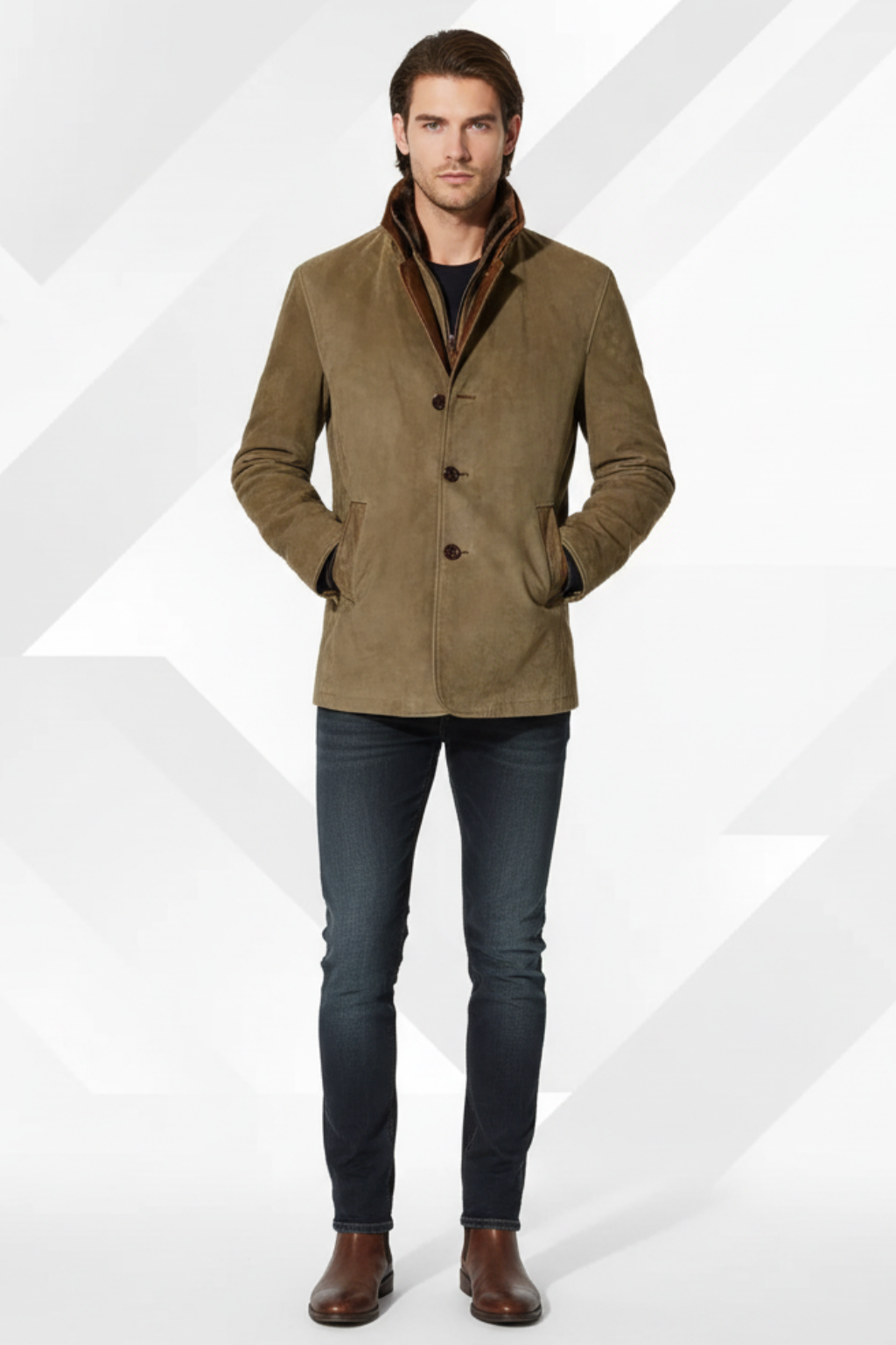 Embrace rugged elegance with this men’s suede jacket, designed for comfort, character, and timeless appeal. Featuring refined leather accents on the collar and pockets, this jacket delivers a sophisticated touch that elevates any look. Its soft lining and tailored fit ensure all-day comfort, making it ideal for work, evenings out, or autumn gatherings.