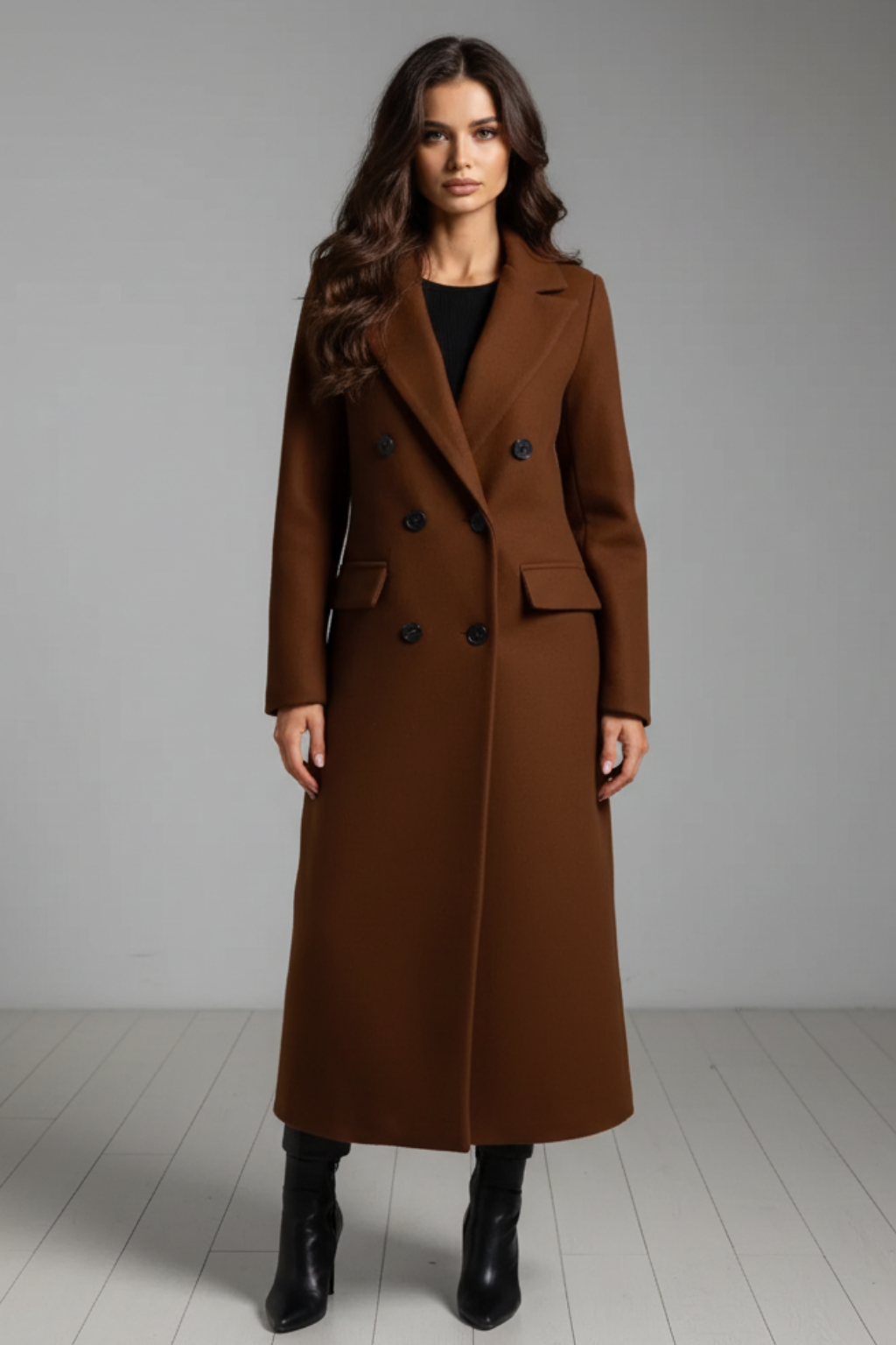 Stay warm and refined with this women’s fitted wool coat, combining timeless elegance with everyday comfort. Featuring a tailored silhouette, double-breasted front, and classic notched lapel, it delivers sophistication and functionality for the colder months. Perfect for both professional and casual wear, it adds polish to every winter outfit.